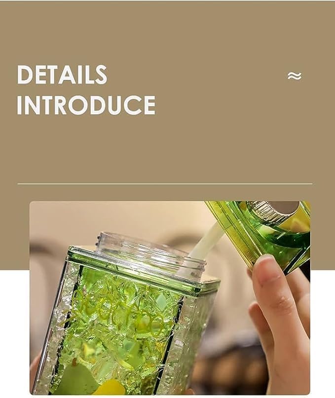 Generic - كوب بتصميم ثلج مجروش بطبقة مزدوجة مع جل رمال متحركة سميك للتخزين البارد بشكل كرتونة لبن مع شفاطة، كوب مشروبات خارجي قابل لإعادة الاستخدام للعصائر والقهوة المثلجة والمشروبات واللبن المخفوق