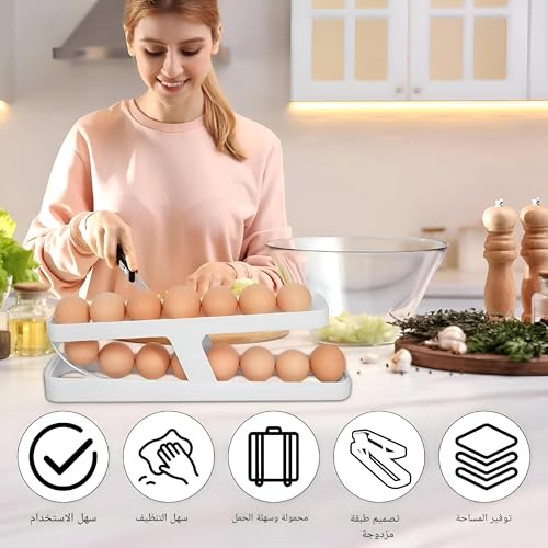 - لا يعمل التصميم ثنائي الطبقة على تعزيز سعة التخزين فحسب، بل يعمل أيضًا على تحسين المساحة في ثلاجتك، مما يسمح لك بتخزين المزيد دون التضحية بالتنظيم أو سلامة البيض.