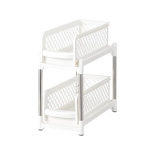 Generic - منظم مزدوج الطبقات - قم بزيادة مساحة تخزين خزانة المطبخ مع رف سحب متين وسهل التركيب للحفاظ على خزانة المؤن مرتبة ويسهل الوصول إليها، مثالي لتنظيم المطبخ بكفاءة (ابيض)