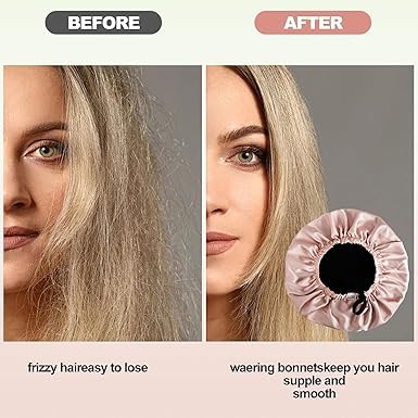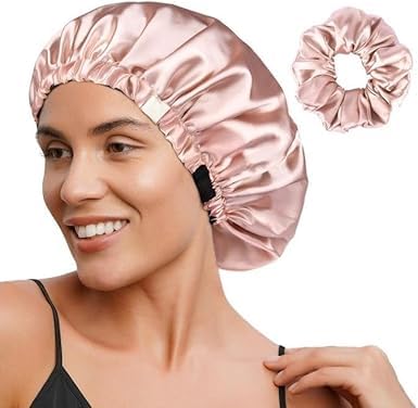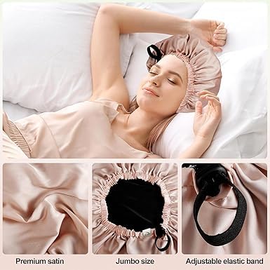 Generic - قبعة حريرية قابلة للتعديل من الساتان مزدوجة الطبقات، قبعة شعر للنوم للنساء