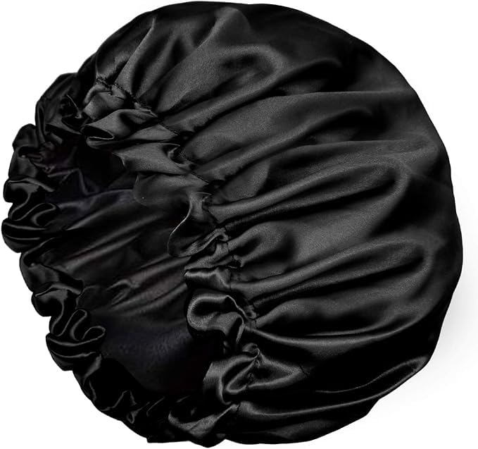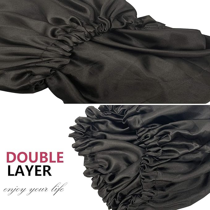 Generic - بونيه مزدوج الطبقات من الساتان الحريري قابل للاستخدام على الوجهين وبتصميم مريح مرن بدون صداع، بونيه بجودة ممتازة مع ربطة شعر، لون أسود، مقاس واحد