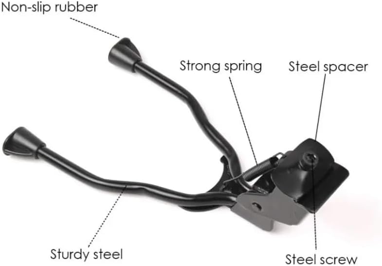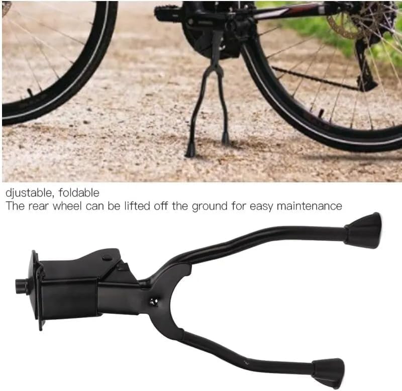 - ✅ مسند للدراجة تصميم مزدوج الأرجل لتعزيز الثبات: يحافظ على الدراجة في وضع مستقيم حتى على الأرضيات غير المستوية.