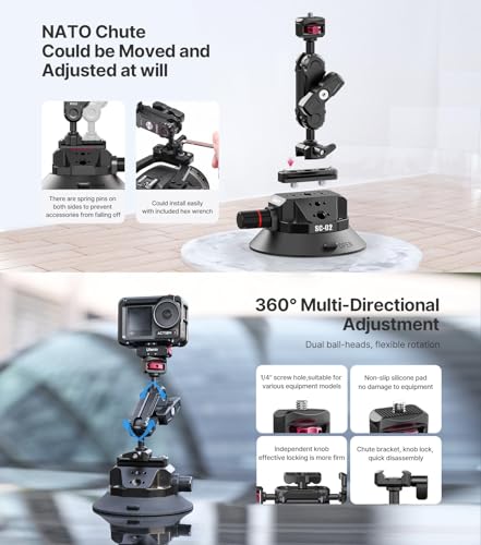 Double O1 - حامل مزدوج O1 اولانزي SC-02 بقاعدة شفط قوية للكاميرا | متوافق مع كاميرا سوني كانون نيكون دي اس ال ار غير عاكسة | حمولة قصوى 3 كجم | قاعدة تثبيت 12 سم | حوامل كاميرا الموبايل والاكشن | ضمان لمدة عام