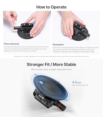 - ملاءمة أقوى / أكثر استقرارًا: حامل أكواب شفط أكبر 4.5 انش، منطقة تلامس أكبر، قوة امتصاص أقوى.