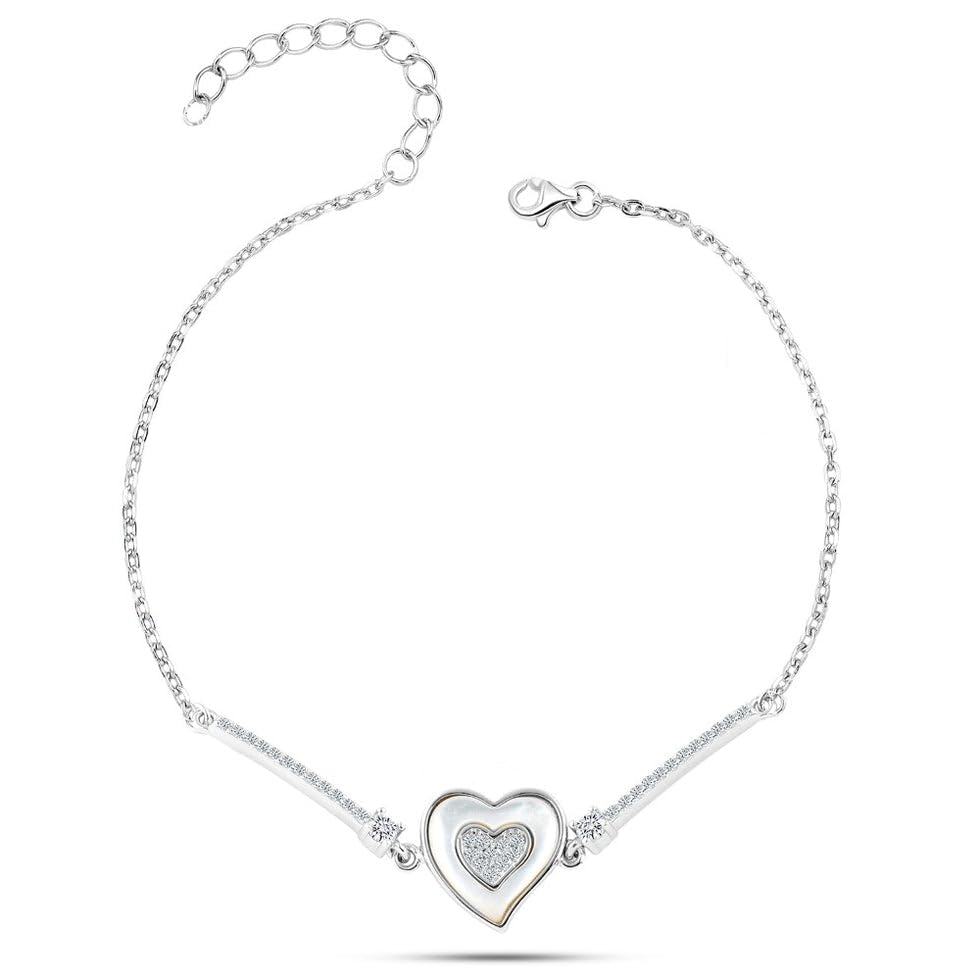 Generic - سوار مزدوج النبض من الفضة عيار 925 مع أحجار لامعة، قلبان في واحد، مزين بأحجار الزركون المتلألئة التي تتألق مع كل حركة