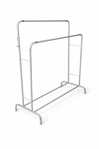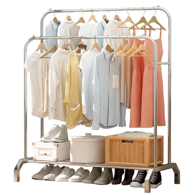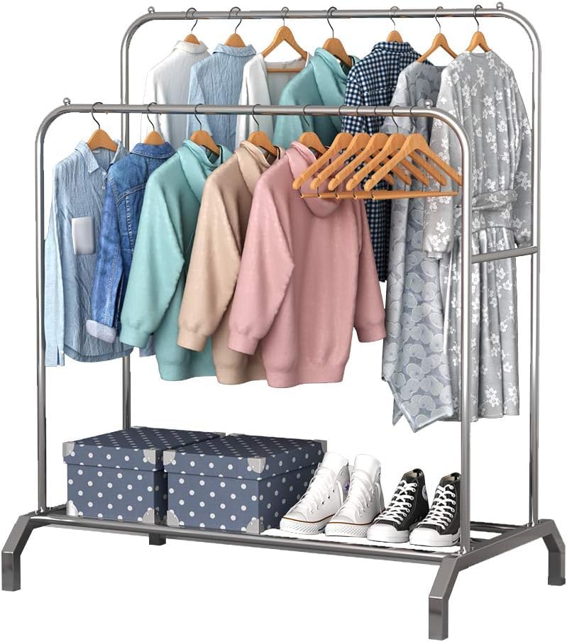 Generic - رف ملابس بقضيب مزدوج، اطار معدني رمادي، مع رف سفلي، منظم ملابس قائم بذاته