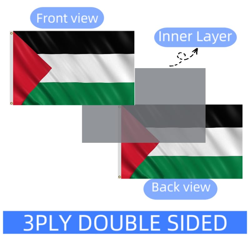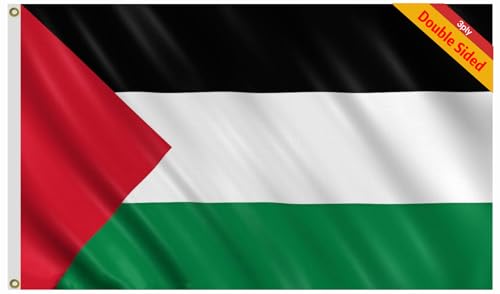 cuttencreat - علم فلسطين مزدوج الجوانب من 3 طبقات 3 × 5 قدم - اعلام وطنية فلسطينية بالوان زاهية، لجميع الاحوال الجوية، مع قماش تظليل داخلي، اعلام فلسطين مزدوجة الخياطة مع حلقة نحاسية قوية. (3×5 3 طبقات)