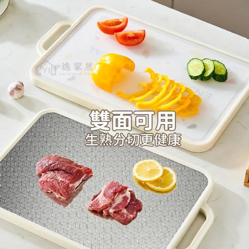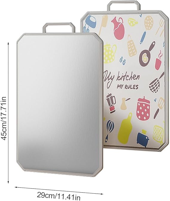 Generic - لوح تقطيع مزدوج الجوانب بتصميم طعام مزخرف، متين ومقاوم للصدأ للخضروات واللحوم والفواكه للمطبخ.