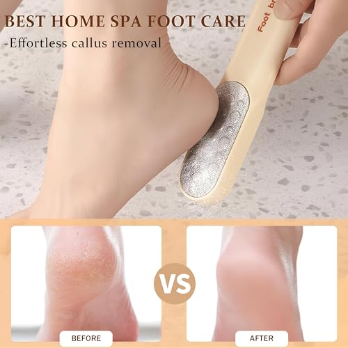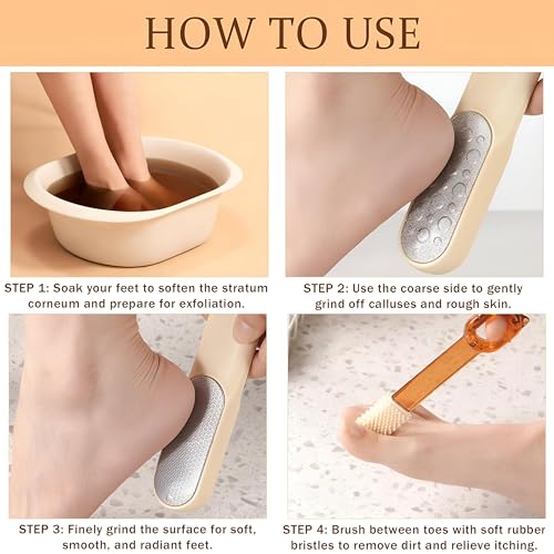 - تصميم مزدوج الجوانب مع ملمس خشن ودقيق يزيل مسامير القدم السميكة بشكل فعال ويلمع البشرة للحصول على لمسة نهائية ناعمة، مناسب للاستخدام اليومي.