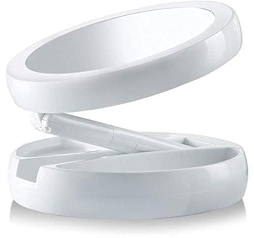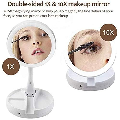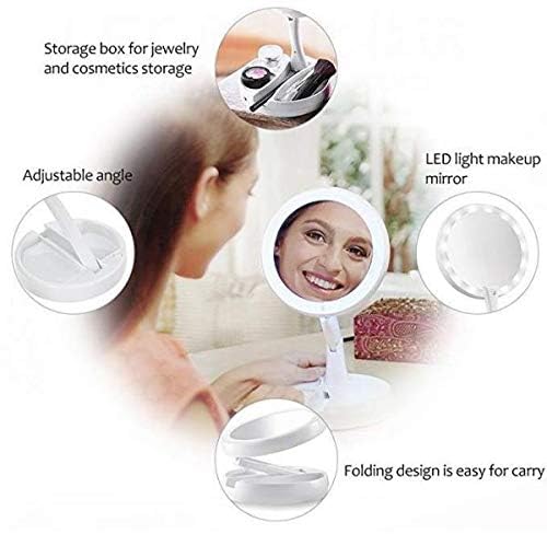 Other - مراة محمولة باضاءة LED مزدوجة الجوانب، قابلة للطي ومناسبة للسفر، مراة محمولة مضيئة بضوء النهار (ابيض)