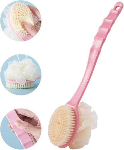 Generic - فرشاة استحمام مزدوجة الجوانب مع ليفة شبكية ناعمة وشعيرات متينة ومقبض 36 سم لتقشير البشرة الميتة والتنظيف العميق وتدليك الجسم المريح