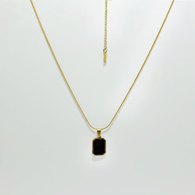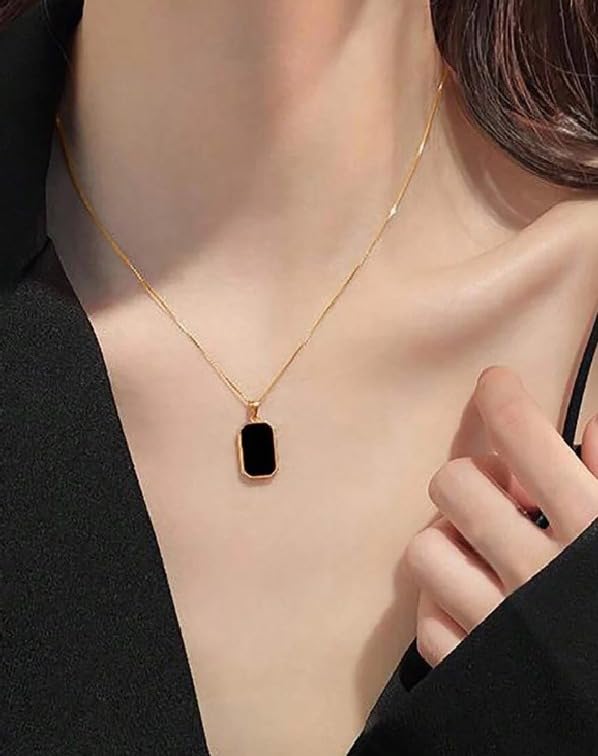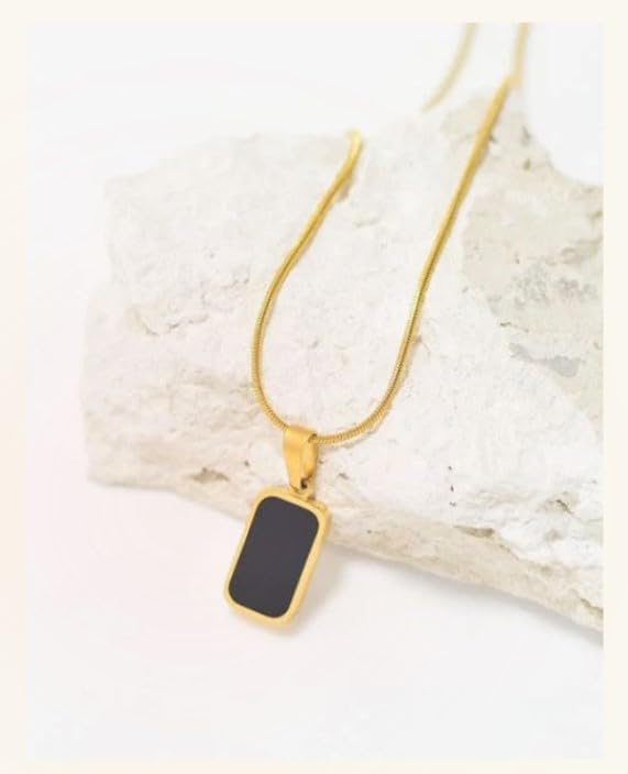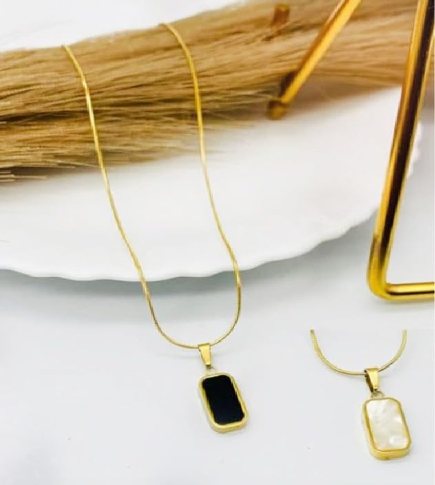 Generic - سلسله مزدوجة الجوانب, مصنوعة من الستانلس المقاوم للصدأ مع قلادة مستطيلة الشكل باللونين الأبيض والأسود.( قطعه واحده على شكل مستطيل)--من رنا ستور