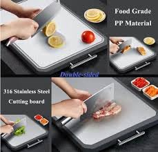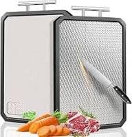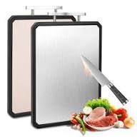 Generic - لوح تقطيع مزدوج الوجه من الستانلس ستيل، آمن لغسالة الأطباق، وجه أملس ووجه شبكي، مع مقبض، مقاوم للصدأ