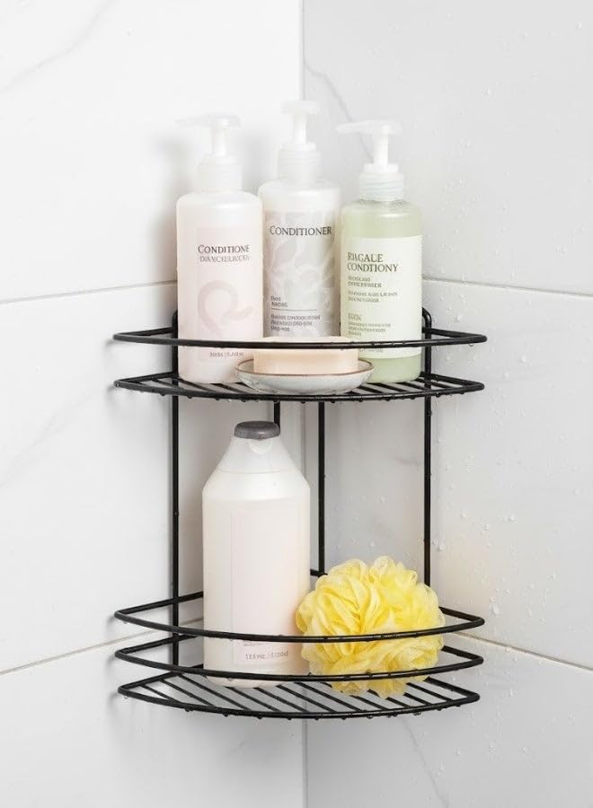 generic - رف زاوية مزدوج من الستانلس ستيل - 2 رف لتخزين الشامبو والصابون ومستلزمات التجميل، انيق 32 × 24 سم، مناسب