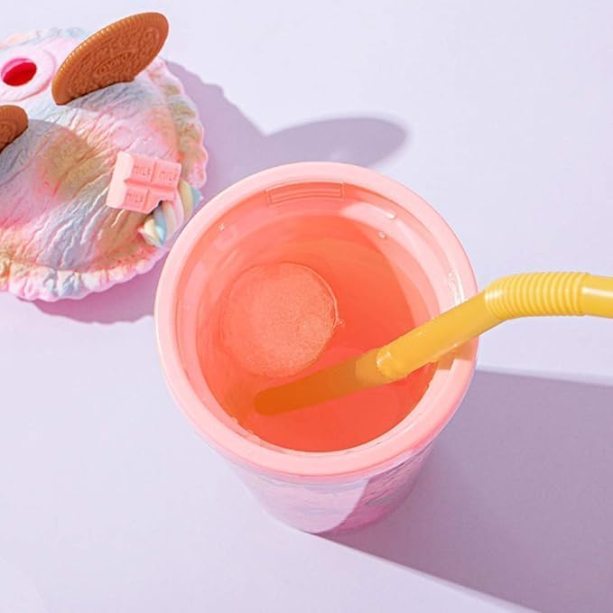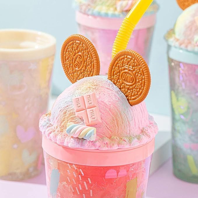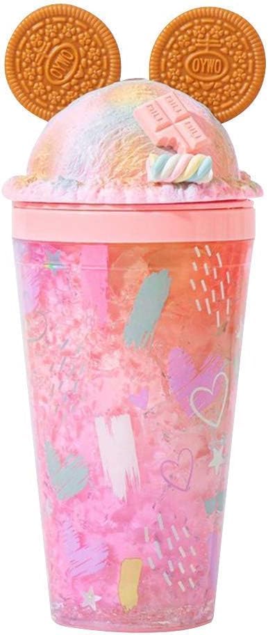 Generic - جدار مزدوج من الاكريليك - تصميم ايس كريم - لكوب العصير محكم الغلق مع حشية سيليكون وماصة للاستخدام اليومي
