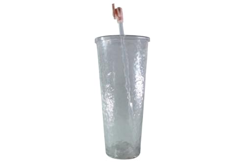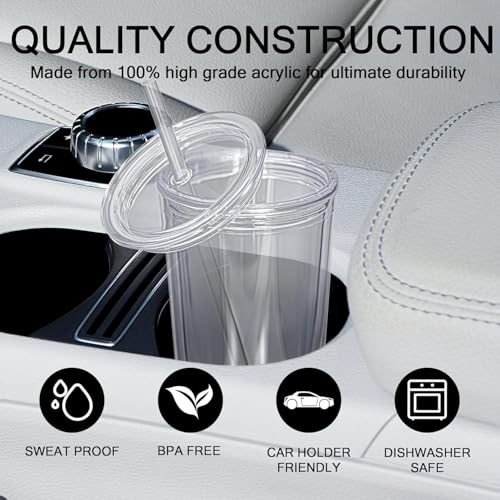 - أكواب اكريليك مزدوجة الجدار مع فتحة مثقوبة مسبقًا وأغطية وماصات وسدادة ثقوب، شفافة