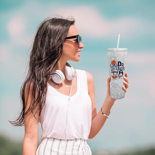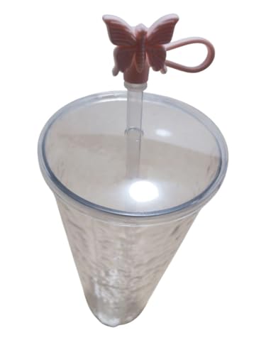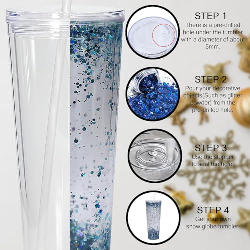 Generic - اكواب اكريليك مزدوجة الجدار بفتحة مثقوبة مسبقا واغطية وماصات وسدادة ثقوب، شفافة (قطعة واحدة)
