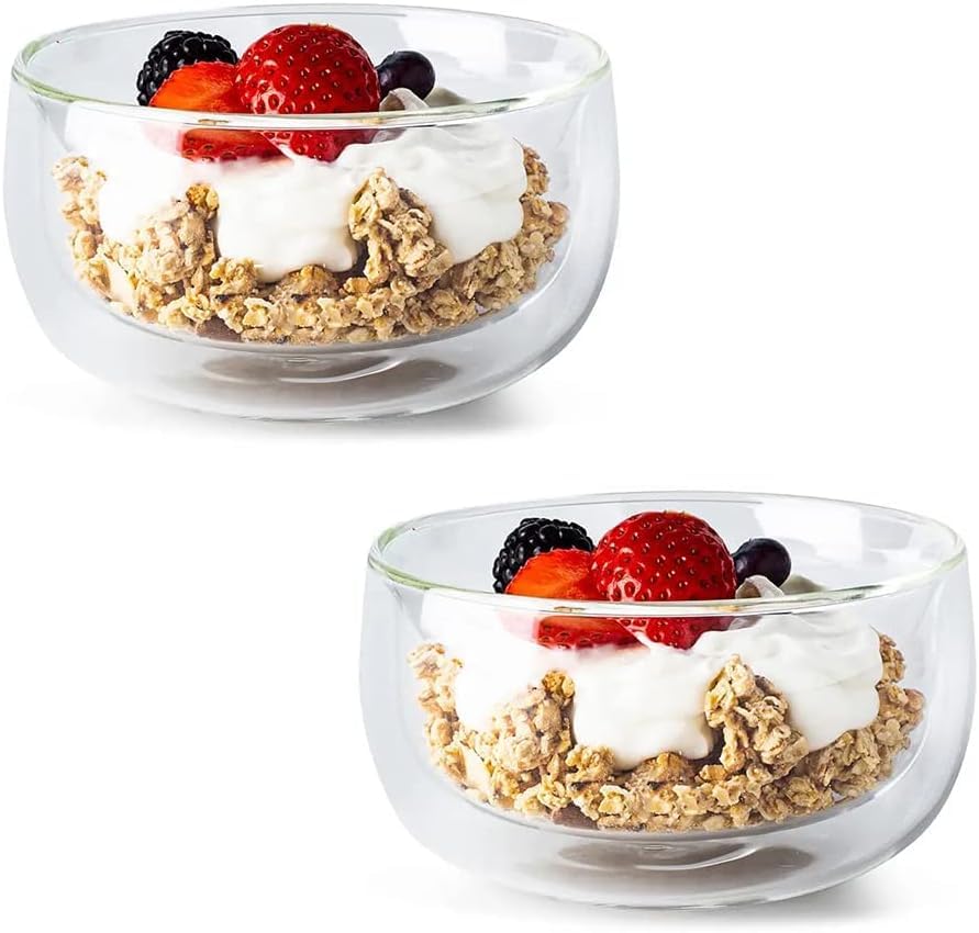 Generic - طقم اوعية زجاجية مزدوجة الجدار للحلوى والحبوب، شفاف، 300 مل، امن للاستخدام في الميكروويف وغسالة الصحون، عبوة من 6 قطع