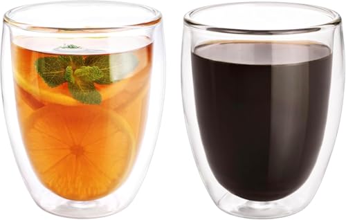 Generic - طقم اكواب زجاجية مزدوجة الجدار بسعة 350 مل، اكواب شرب مقاومة للحرارة للقهوة والشاي واللاتيه والشوكولاتة الساخنة، عبوة من قطعتين
