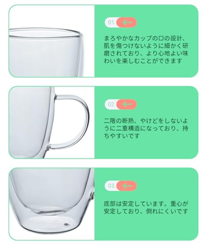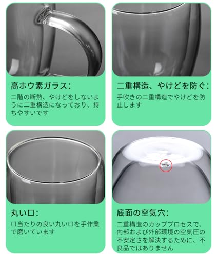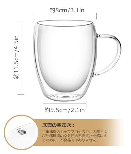 - المواصفات: السعة: 12 أونصة سائلة (350 مل). المواد: زجاج مقاوم للحرارة درجة الحرارة: -20 درجة مئوية ~ 150 درجة مئوية الحجم: الارتفاع: تقريبًا. 4.5 بوصة (11.5 سم) × القطر: تقريبًا. 3.3 بوصة (8.5 سم) × عرض الجزء السفلي: 2.0 بوصة (5 سم). الوزن: حوالي 0.2 كجم، بلد المنشأ: الصين