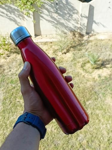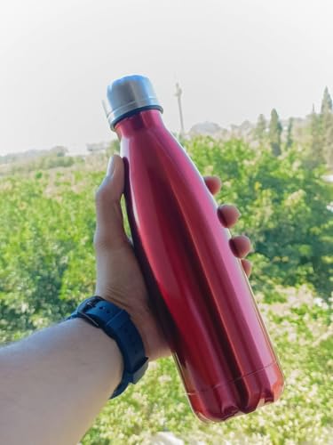 Generic - زجاجة مياه رياضية مزدوجة الجدار من الفولاذ المقاوم للصدأ بسعة 500 مل / معزولة بالفراغ ، قارورة حرارية للسفر خالية من مادة BPA (احمرداكن)
