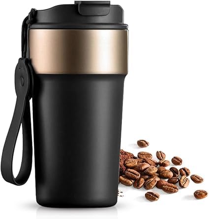 Generic - مج حراري من الستانلس ستيل مزدوج الجدار مع عزل حراري قوي، مقاوم للتسرب، مزود بغطاء محكم وحزام حمل، يحافظ على درجة حرارة المشروبات الساخنة والباردة لفترة طويلة (اسود)