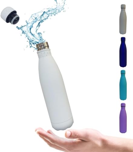 Generic - زجاجة مياه مزدوجة الجدار معزولة بتفريغ الهواء من الستانلس ستيل بدرجة 18/8 تحافظ على المشروبات باردة لمدة 24 ساعة وساخنة لمدة 12 ساعة وخالية من مادة البيسفينول أ ومثالية للتنقل، ابيض