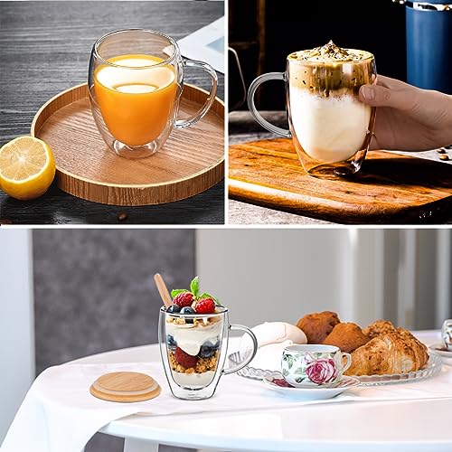 Gunolye - طقم أكواب قهوة مزدوجة الجدران مصنوعة من زجاج البوروسيليكات مع غطاء، مناسبة للإسبريسو واللاتيه والماكياتو والقهوة المثلجة المشروبات الساخنة والشاي الكابتشين اللاتيه، مكون من 4 قطع، سعة 350 ملليلتر