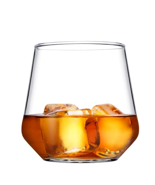 - ELEGANT STEMLESS TUMBLER: Sleek, clear rocks glass design is ideal for serving whisky, bourbon, scotch, or any spirit on ice.