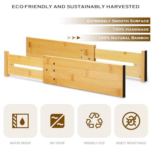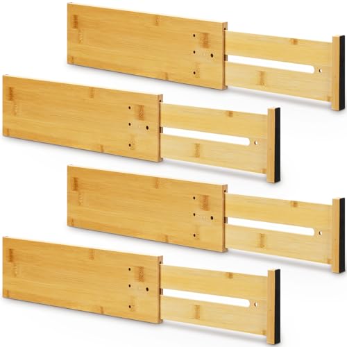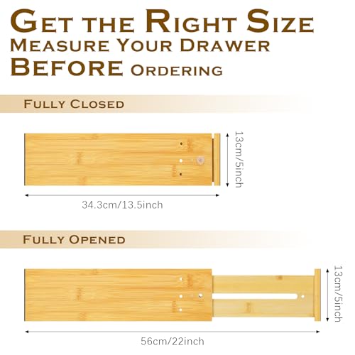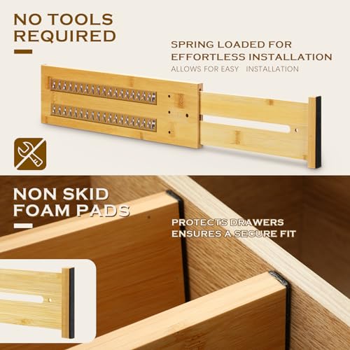 DoubleFill - فواصل ادراج عميقة من الخيزران من دابل فيل، منظم ادراج عميق لخزانة المطبخ مع زنبرك قابل للتعديل والتوسيع من 34 إلى 56 سم، فواصل ادراج لخزانة الملابس (13 سم)