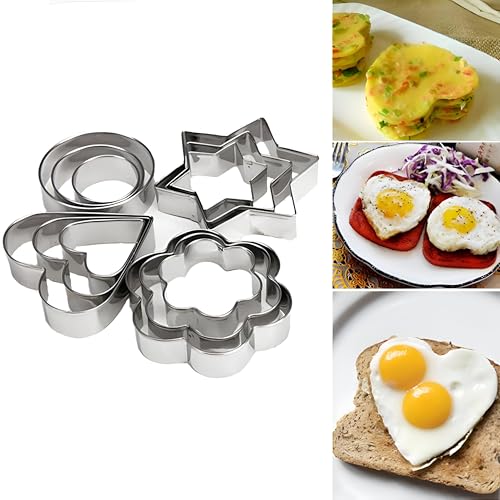 Generic - قطاعات عجين من الفولاذ المقاوم للصدأ مع 3 أحجام للخبز والخبز المحمص والكوكيز والبيض وأشكال ممتعة لإلهام الأطفال وللحرف اليدوية بالطين، 12 قطعة