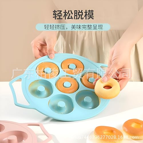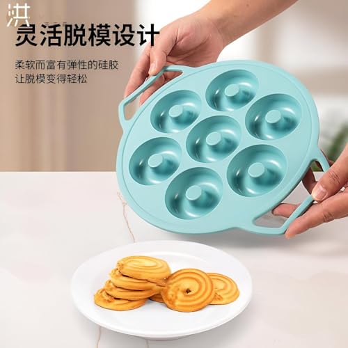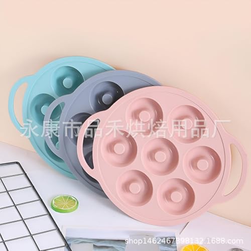 Generic - صينية دونات - هيكل غير لاصق من السيليكون والستانلس ستيل مع 7 تجاويف لخبز الدونات الحلوة او المالحة او الخبز او الكيك، مجموعة متعددة الالوان، سهلة الصيانة في غسالة الصحون