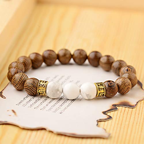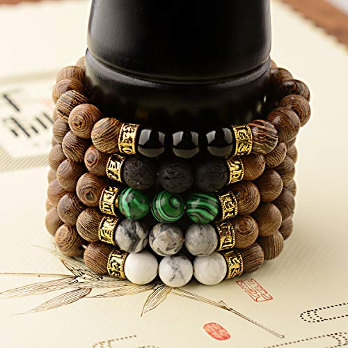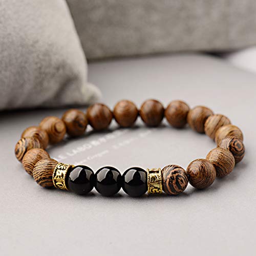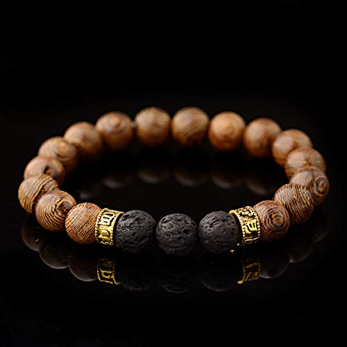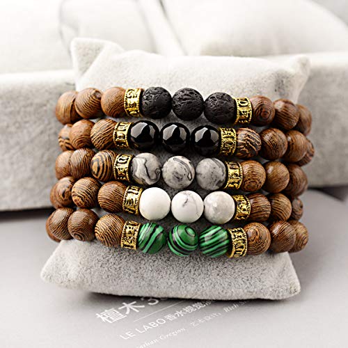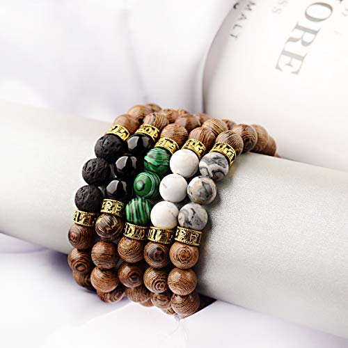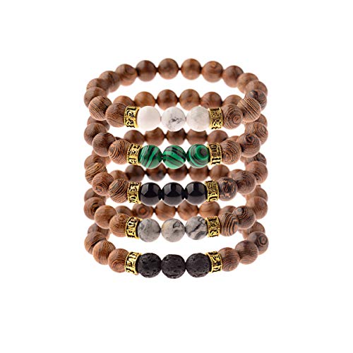 DOUVEI - سوار خرز خشبي من دوفي، سوار من لافا روك من الخرز الخشبي والاحجار الاحجار الكريمة لنشر الروائح العلاجية مناسب للرجال والنساء, 6.5-7inch, حجر, العقيق
