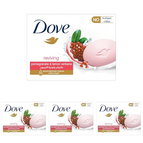 Dove - لوح صابون برائحة الرمان منعش ومغذي للبشرة وبـ ¼ كريم مرطب من دوف، 90 جرام (عبوة من 4 قطع)