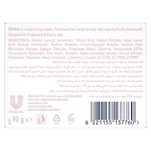 DOVE - لوح صابون بيوتي كريم بينك من دوف ب1/4 كريم مرطب بوزن 90 جرام