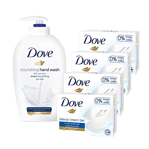 Dove - دوڤ صابونة بيوتي كريم بيضاء (عدد 4 × 135 جم) مع غسول يدين 220 مل مجانًا، متنوع