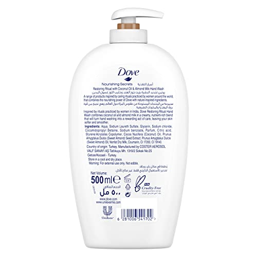 Dove - غسول اليدين المغذي من دوف بزيت جوز الهند وحليب اللوز لاستعادة نضارة البشرة، 500 مل (عبوة من 3)