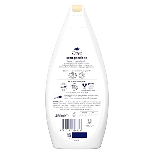 Dove - شاور جل بريشس سيلك للرجال والنساء من دوف، مع تركيبة ديرمو الطبيعية المرطبة والمعززة بكريم مرطب 1/4، تم اختباره من قبل أطباء الجلدية، غسول جسم يأتي في زجاجة معاد تدويرها بنسبة 100% * 450 مل