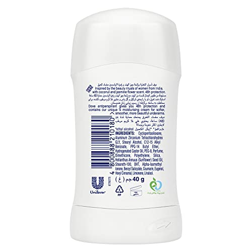 Dove - مزيل عرق صلب من دوف بدون رائحة للنساء، سعة 40 غرام، حماية لمدة 48 ساعة مع تركيبة مرطبة خالية من الكحول