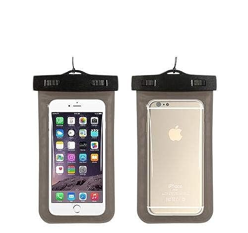 Dowin - جراب موبايل شفاف مقاوم للماء من بلاستيك PVC متوافق مع IOS وAndroid حتى 6 بوصة شنطة مقاومة تحت الماء لجميع الجوالات - اسود لابل ايفون بلس