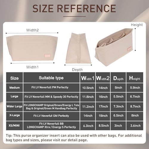 Doxo - حشو منظم شنط اليد وقاعدة تشكيل من دوكسو، منظم كبير لشنط التوت مصنوع من اللباد مع سوستة، متوفر بـ3 مقاسات، متوافق مع سبيدي ونيفرفول ام ام والمزيد، مجموعة من قطعتين (لون بيج، مقاس كبير، مجموعة مختلطة)
