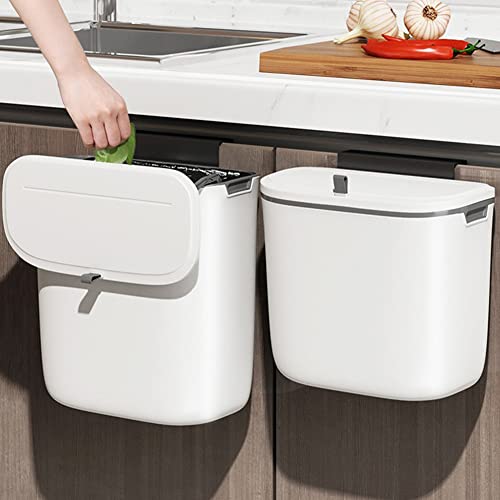 Doyingus - سلة مهملات سعة 9 لتر مع غطاء للتعليق بضلفة المطبخ أو تحت الحوض سماد للمطبخ قمامة صغيرة تثبت على الحائط وسطح الطاولة والحمام أكريلونيتريل بوتادين ستايرين من دوينغوس