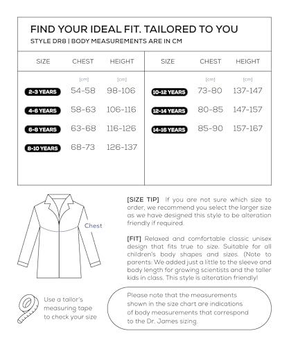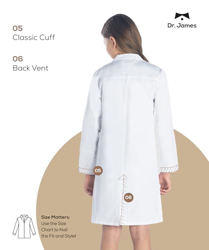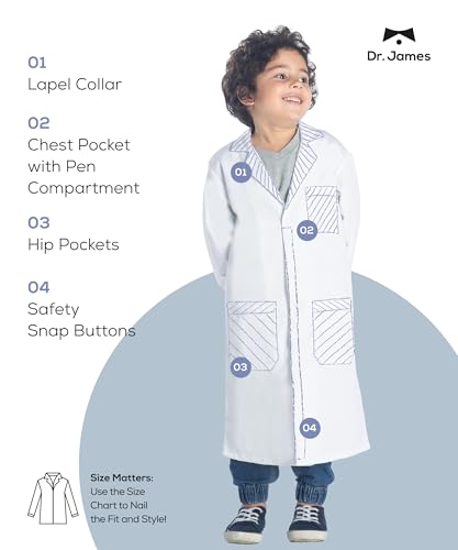 Dr. James - دكتور. معطف المختبر متين ومميز للأطفال مع أزرار كبس من دكتور جيمس