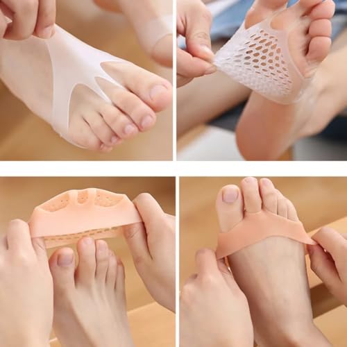 - منتج متكامل للعناية بالقدم - يشتمل على مصحح إبهام القدم من جل يسبس بمسامات ووسادات سيليكون لمشط القدم ووسائد لمقدمة القدم بتصميم قرص العسل بالإضافة إلى فواصل للأصابع وهو مناسب لكل من الرجال والنساء.