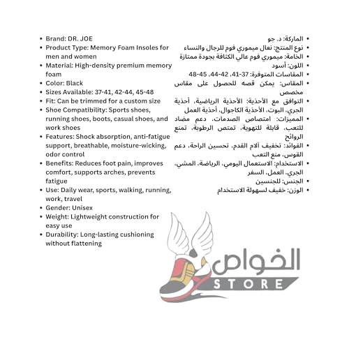 - 4️⃣ متعدد الاستخدامات يناسب جميع أنواع الأحذية؛ مصمم ليناسب الأحذية الرياضية وأحذية الجري والأحذية ذات الرقبة الطويلة والأحذية الكاجوال، هذه النعال الداخلية هي البديل المثالي للحشوات البالية. متوفرة بمقاسات 37-41 و42-44 و45-48، ويمكن قصها لملاءمة مخصصة. سواء لممارسة الرياضة أو المشي لمسافات طويلة أو الارتداء اليومي، فإنها تنزلق بسهولة إلى معظم أنماط الأحذية دون إضافة حجم كبير. القاعدة غير القابلة للانزلاق تبقيها في مكانها، مما يوفر راحة آمنة أثناء أي نشاط، من التدريبات إلى المشي اليومي.