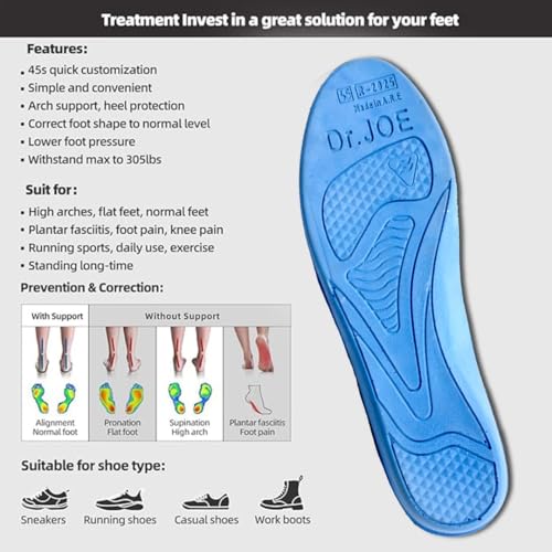 DR. JOE - نعل داخلي طبي من فوم ميموري ماص للصدمات وقابل للقص حسب المقاس، بطانة جلد لدعم قوس القدم مقاومة للانزلاق تمتص العرق لتقويم العظام، مسامات تهوية، تخفف الألم، لأحذية رياضية وكاجوال من دكتور جو، 41