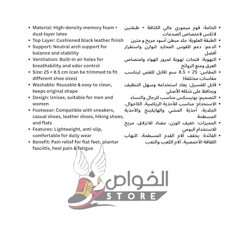 - 7️⃣ 【راحة عالمية للجميع】 تصميم للجنسين مناسب لكل من الرجال والنساء. يوصى به لأولئك الذين يقضون ساعات طويلة في الوقوف أو العمل أو ممارسة الرياضة. إكسسوار لا غنى عنه لتحسين نمط الحياة اليومي، يجمع بين دعم تقويم العظام ولمسة نهائية أنيقة من الجلد الأسود.