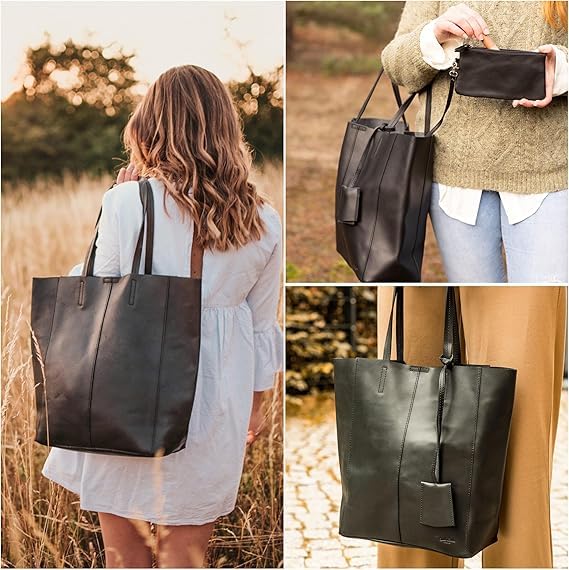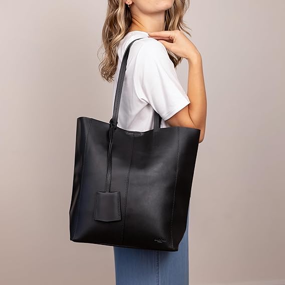 dr.key - شنطة يد كبيرة توت كاسيدي من جلد البقرة الطبيعي بإغلاق مغناطيسي، شنطة كتف مناسبة للابتوب مقاس 15 بوصة ومستندات A4 للنساء من دكتور كي، سعة 13 ل، أسود