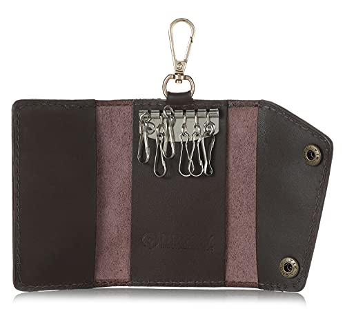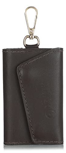 dr.key - حافظة مفاتيح جلد مطفي بمشبك خطاف للجنسين من دكتور.كي - بني داكن