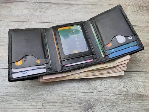 - محفظة ثلاثية الطي للرجال جلد طبيعي مائة بالمائة من مصنع دكتور كيي لا بطانات وانسجة صناعية فهي تدوم لسنوات لانها مصنعة من ارقي انواع الجلود الطبيعية تحتوي علي جيب للنقود و 10 جيب للبطاقات وجيب شفاف للهوية تصل في غلاف انيق تصلح كهدية قيمة الابعاد 11 سم * 8.5 سم *1.5 سم